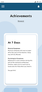 Achievements are awarded to users as cards that display pertinent information regarding the symptoms and physiological responses that come with said amount of days sober.